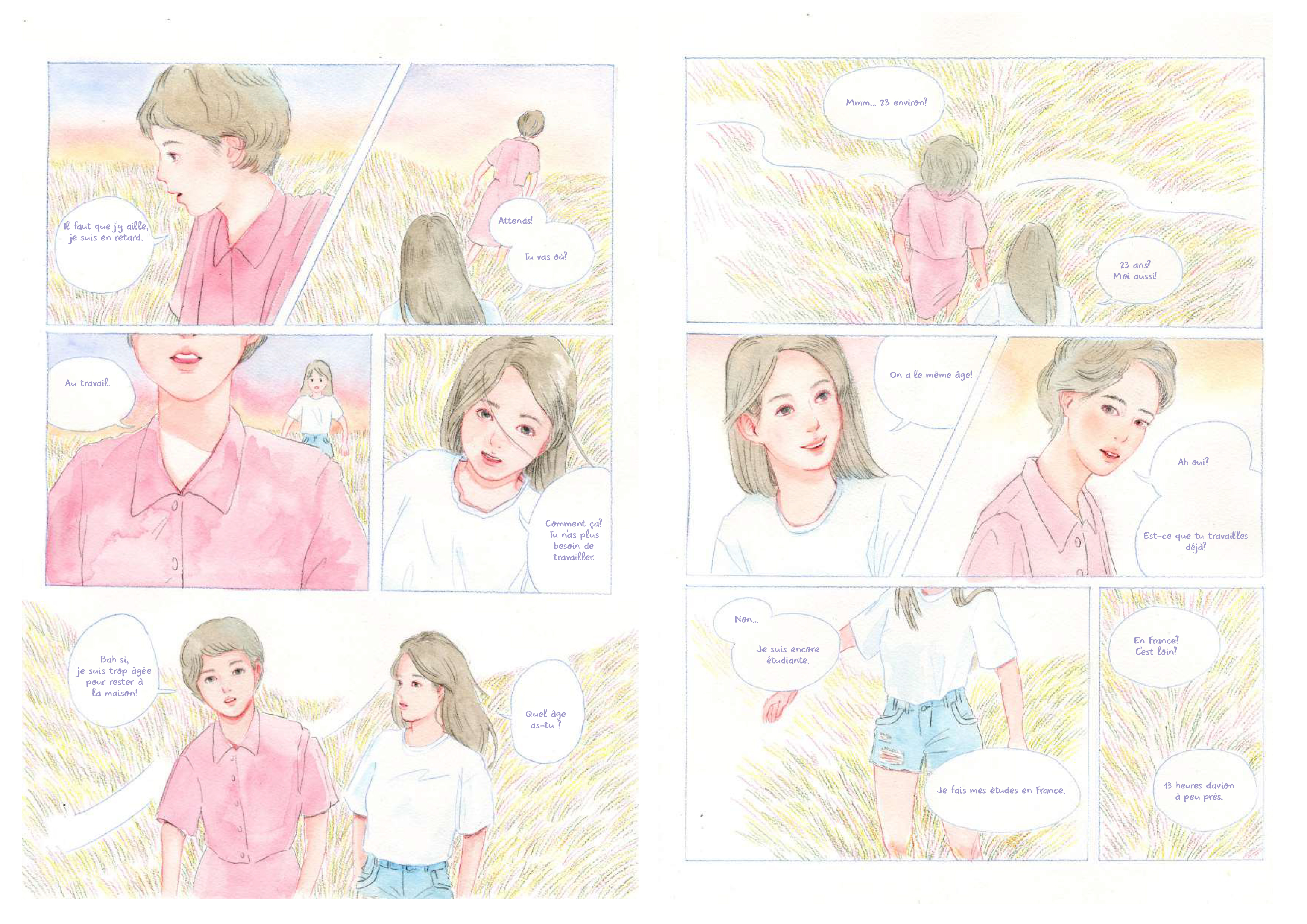 Ce principe narratif permet de s’interroger sur l’incertitude de nos identités à l’époque contemporaine, alors que la mondialisation des échanges et la possibilité de mener une double existence sur les réseaux modifie notre rapport à la condition humaine. Je fais part de ma propre expérience d’étudiante taïwanaise ayant fait toutes ses études supérieures dans une école des beaux-arts françaises (l’ENSAD de Nancy). Il y a des éléments personnels dans ces histoires, mais on ne peut pas parler d’auto-représentation ni même d’autofiction. Il n’est même pas sûr que les trois personnages principaux féminins soient une seule et même personne, ceci pour rester fidèle au principe d’incertitude qui fonde le projet même.